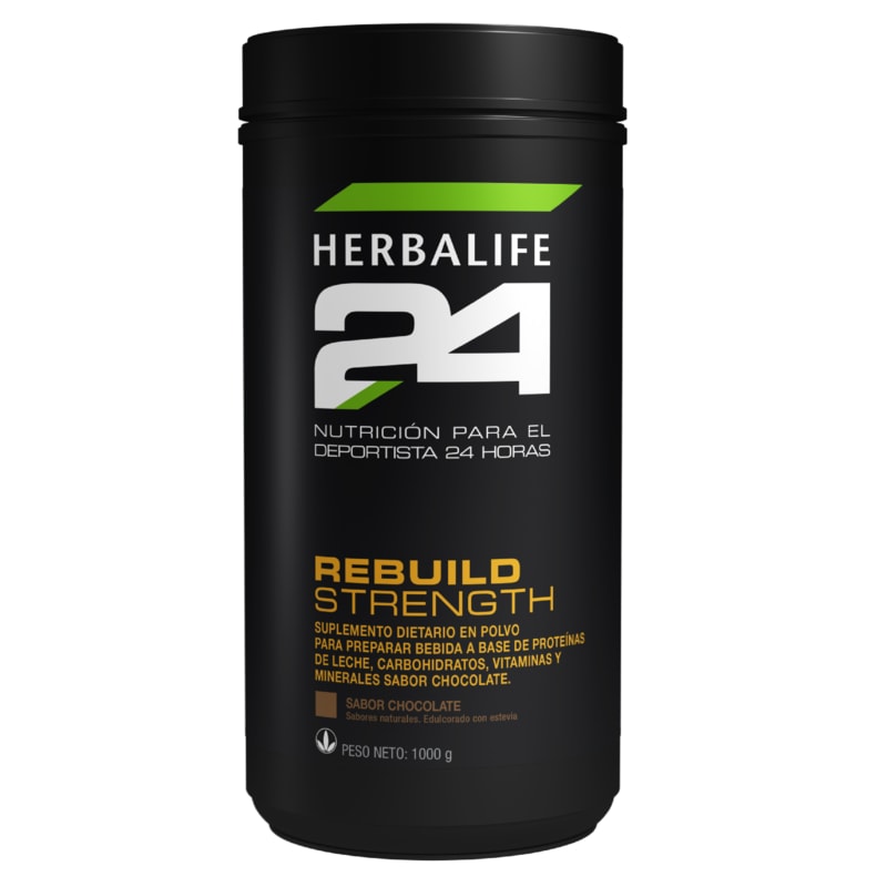 Suplemento dietario en polvo para preparar bebida a base de proteínas de leche, carbohidratos, vitaminas y minerales sabor chocolate.